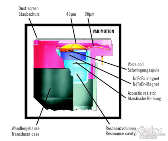 接下来我们先来看下对Varimotion异厚振膜的技术解析:Varimotion振膜技术是指整片振膜的厚度并非完全一致,而是中间的声音区(Sound Zone)振膜较厚、专作类似活塞运动的振动,避免局部振动,以获得良好的空间感和高频分析力;周围的运动区(Movement Zone)振膜较薄,有敏锐的振动性能,可获得优秀的动态和低频响应。这样的设计既可有效减轻振膜的质量,提高振膜的刚性,取得合理的Q值,对于突发的瞬态反应更佳,更可减少大音量下振膜的分割振动,大幅度降低失真度。Varimotion技术的专利XXL传感器,在低阻抗,高灵敏度的特性下,对于细微讯号的再生能力,低频量感、清澈的中高频以及更大的动态皆有所助益。