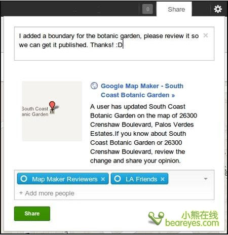 谷歌表示,“通过与你在Google+可能是区域性的专家或是了解特定区域的好友,共享你的地图编辑或评论,使你既可以享受到共同利益,又可以完善谷歌地图。”