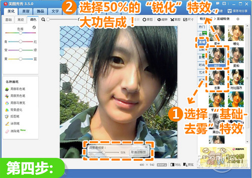 虽然我们难敌阳光辐射,但是只要利用“美图秀秀”动动鼠标就能轻松抹去阳关的印记,恢复白皙如初,是不是很简单?当然大家要根据照片的情况,灵活地调整特效透明度,让皮肤白地更自然哦!
