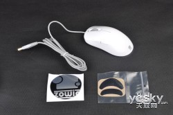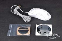 最后来看看包装与附件,不得不吐槽的是ZOWIE的包装一直很薄啊,完全不能顶住攻击力100的快递大叔们,不过转念一想,我是买鼠标又不是买盒子,也就心安理得了,更何况鼠标刚拆出来时候底盘还有一层保护膜,基本上避免了压坏的可能性。