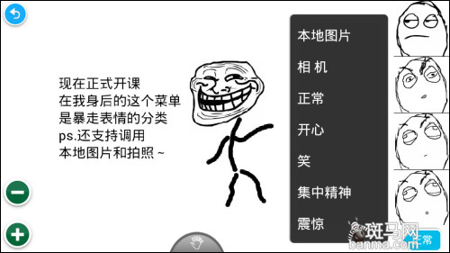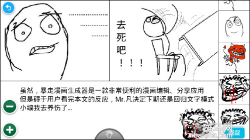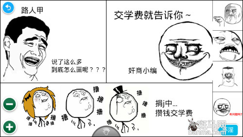 本评测纯手机制造 安卓暴走漫画制作器试玩 薇仙之爪 斑马网(www.banma.com)官方账号 2012.09.1008:09 关注 Mr。凡暴走漫画制作器界面屌丝苦求漫画制作方法暴走小编详细传授技艺暴走小编犯贱遭围攻