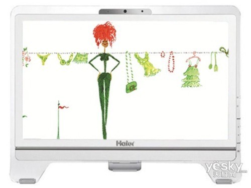 外观方面,海尔乐趣Q51-D205一体机依然采用白色的机身,透明的塑料材质边框和支架,屏幕正上方拥有一枚摄像头,主机的正面没有任何扩展键,简洁美观。屏幕采用20英寸的高清宽屏,键盘与鼠标也采用白色与灰色的色调搭配,整机看起来看更美观,放在家里任何位置都显得大方。