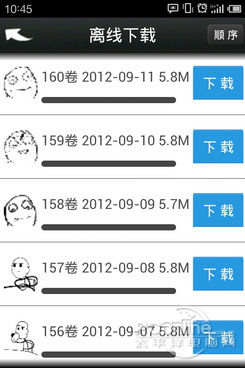 Android暴走漫画拥有离线下载功能,如果你不想在上班上学途中耗费太多的流量,只需要在家里连接WiFi提前下载暴走漫画即可。