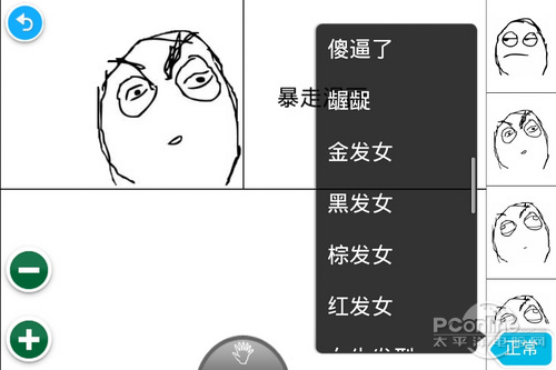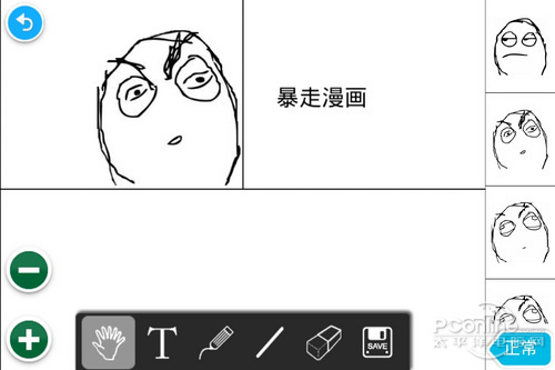 Android暴走漫画制作器的暴走漫画制作功能很丰富,可以使用暴走漫画表情(这个肯定是必须的),可以添加不同大小颜色的文字、线条等等,下面是暴走漫画制作的一些功能,大家可以看看。