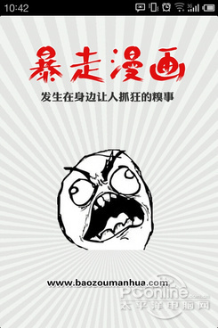 如名字一样,暴走漫画就是用来看Android平台上暴走漫画的App。打开Android暴走漫画App时会先出现一个启动界面,接着就直奔主题,众多最新的暴走漫画直接呈现在你面前。