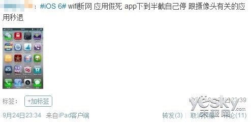 知名媒体人发布微博表示苹果iOS 6应用兼容性、稳定性不理想