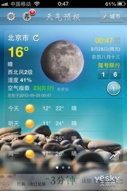 凭借着精美的画面、详细的气象指数以及具备应用icon气温显示等特点,天气预报也颇受众多用户青睐。当然更为重要的是,这款应用同样与苹果iOS 6正式版本完美兼容。