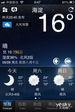 墨迹天气在中国大陆移动应用市场之中有着较高知名度,其苹果iOS版本长期位居苹果App Store中国区天气类免费应用首名。这款应用没有让我们失望,同样运行稳定。