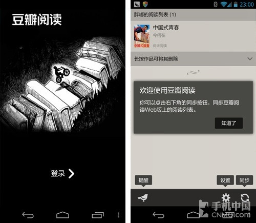答案是肯定的,豆瓣阅读的设置并不麻烦,只要我们登陆自己的豆瓣账号即可。不过当笔者登陆账号后,发现这款应用并不像其他在线阅读应用一样可以进行在线的书籍选择,而是只能够同步PC端已经下载的书籍,单向的选择,也让笔者觉得很不方便。
