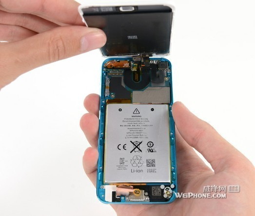 touch的电池也比iPhone 5的简单,规格为3.7V/3.8瓦时、电池容量为1030mAh