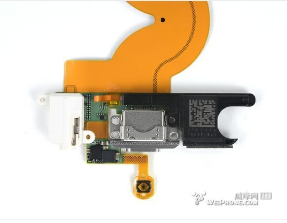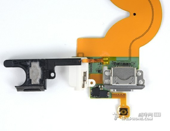 将音量键、麦克风、LED闪光灯、电源键的带状缆线从后壳上分离下来