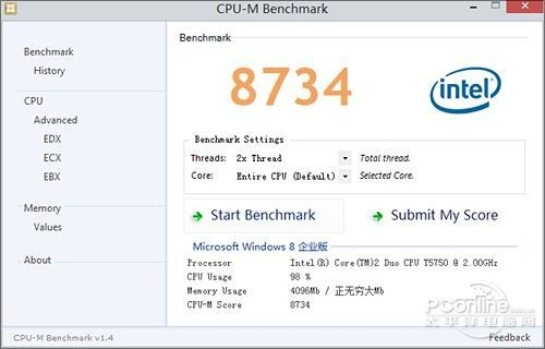 这里很容易想到另一个问题,既然该选项的作用并不仅限于启动环节,那么究竟会对系统性能产生多大影响呢?笔者想到通过一款CPU测试软件——CPU-M Benchmark来回答一下。