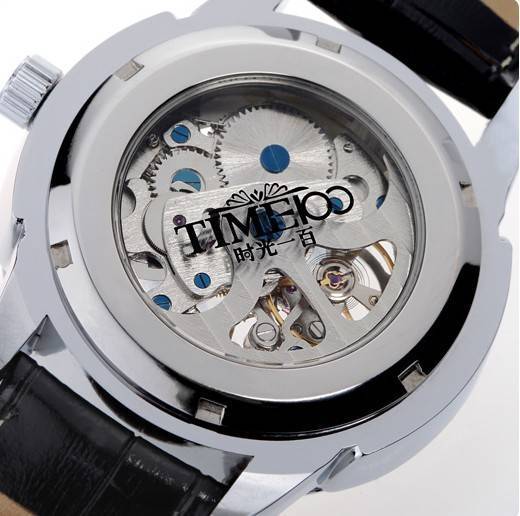 TIME100在坚守时尚路线的同时,也不忘款式技术的创新,这款透式镂空机械表,采用全透视设计,经典圆形大表盘直径尺寸直达42毫米,表面 大镂空,表背特制机芯摆陀,摆频:21600次/小时 动力储存36小时,内部全自动机械镂空透底,让你每一秒清晰可见齿轮运作;不仅如此,透视底盖让机 芯的精密构造,和陀轮的运动一览无遗!高耐磨强化水晶玻璃镜面明净闪亮、经久耐磨;对于镂空表来讲防水性能至关重要,此款表经过权威机构检测达到30m防 水,有别于我们常见其它品牌的“生活防水”,该表的表壳、表镜、底盖均为无缝结合,碰到雨天、冬天表镜里面不会起雾。另外,该表采用柔软真牛皮表带,佩戴 极为舒适。清晰、大方的镂空圆形表面,坚固耐磨的表身是这款手表的特色所在,戴上他,一举一动中都散发出时尚的现代气息。无论是出入职场还是会客访友,镂 空机械腕表始终是您的最佳选择。