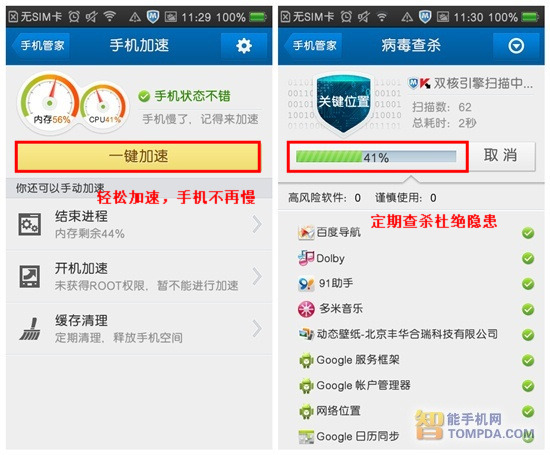 腾讯手机管家加速与查毒