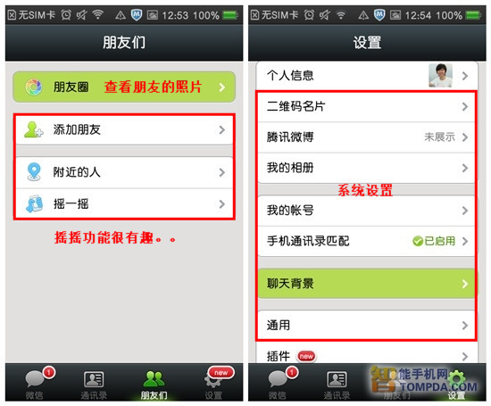 打开微信中的“朋友圈”菜单,你可以浏览好友上传的最新图片,分享他们的心情,当然,你也可以随时上传自己的靓照或随意街拍。在微信中用户可以利用定位来搜索附近的用户,还可以通过摇一摇功能,添加身边甚至是千里之外的朋友,相当好玩。