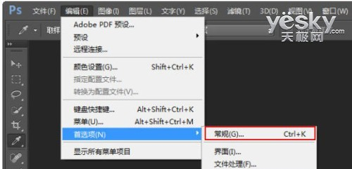 在Photoshop中选择菜单“编辑—首选项—常规”即可进入Photoshop的首选项设置界面。直接按“Ctrl+K”快捷键也可以。