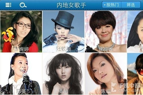 通过圆盘主功能菜单进入麦霸专区,这里有很炫的格子展示区,歌手是男是女、是文艺范儿还是超级屌丝一目了然。点击任意格子就可以进入相应的MV 进行播放,如果确认当前歌手正是你的菜,不妨送束花来鼓励一下吧。除了评论和分享之外,我们还可以把当前歌手加入到自己的关注中。