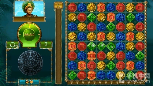 与其它款祖玛游戏不同的是,《蒙特祖玛的宝藏(Treasure of MonteZuma)》不再是一个地图上滚球的游戏了,是一款消除方块的游戏。