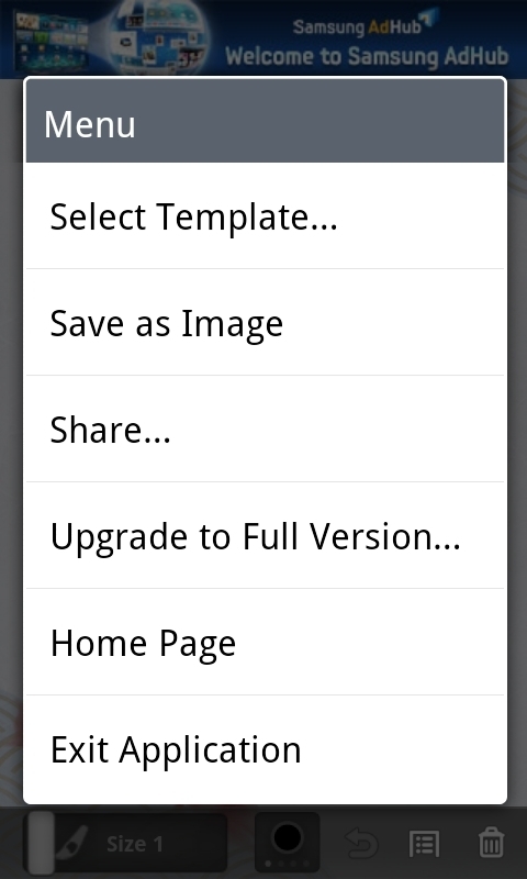 一直使用同一款画纸肯定会觉的单调,点击“垃圾桶”左侧的按键,这时会出来一组菜单,选择最上面的“Select Template”,进入画纸选择,因为是免费版,暂时只有10款壁纸供大家选择。小试一下,写的不好,还请轻喷。