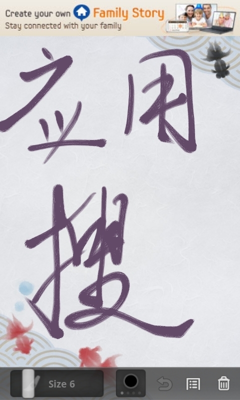 这款软件并不是什么专业的书法绘画软件,休闲随意,在你的Android设备上肆意挥洒你的创意想法,无需墨水和纸张,屏幕就是宣纸,而你的手指就是毛笔,洋洋洒洒几笔,墨韵就在指间。