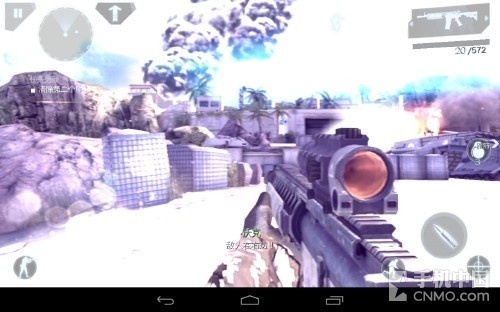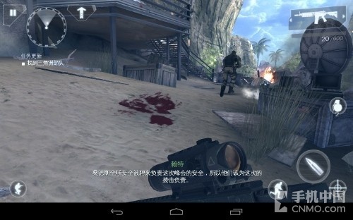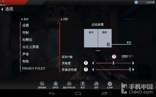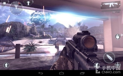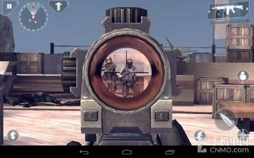 好了,来说游戏的操作吧,还是老样子Gameloft对于射击游戏的把握已经有了很高的造诣,游戏大体上还是使用了虚拟摇杆+按键的形式进行操 作,同时你还可以启动陀螺仪进行辅助瞄准,笔者在玩前几款Gameloft的射击游戏时已经适应了开启陀螺仪进行游戏的方式,所以这次也不例外,同时也强 烈建议大家开启陀螺仪进行游戏,会让游戏的代入感更佳。