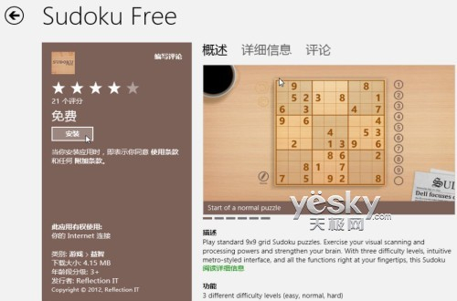 图示:Windows 8系统中数独游戏的难度及游戏选项设置