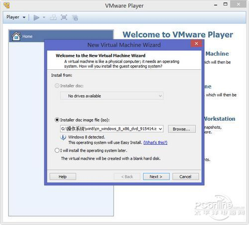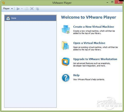没错,候选替代软件竟然是同样出自Vmwar的VMware Player。与VMware Workstation不同的是VMware Player为免费软件(VMware Player 可免费用于个人非商业用途。),不过早期的VMware Player只能使用创建好的虚拟机文件,自身却不能创建或安装系统。不过目前VMWare公司非常厚道地在 VMWare Player 新版本中加入了“创建虚拟机”的功能,使得这个免费的软件的实用价值大幅提升了。