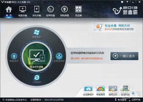 自从金山毒霸开始免费以来,它的品质与功能并没有因为免费而降低,相反的给用户带来了不少实用的功能。目前最新版的新毒霸悟空 sp1拥有全新升级引擎KVM及火眼系统,支持手机双平台杀毒,还有48360元网购敢赔险保险金,是用户一个不错的选择。