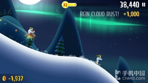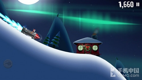 滑雪大冒险的游戏画面做得非常精致,虽然游戏里的人物个头不大,但看得出效果制作非常细腻,套用了新款圣诞主题后,滑雪大冒险的主人公也带起了 圣诞老人的帽子,同时游戏中的其他配角也有了不小变化,熟悉的可爱雪人没怎么变,但是黑夜主题中的狼变成了麋鹿。再加上房子等场景的全新装扮,圣诞气氛非 常浓郁。