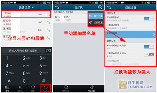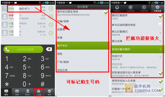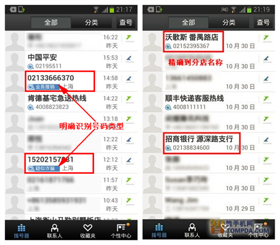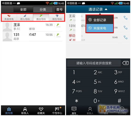 在手机自带的通话记录中,用户通常可方便的查看已接、未接、已拨这几项内容,那么这五款参评的拨号软件,是否也支持详细的通话纪录分类查看,以便用户一目了然?一起测试下这个功能: