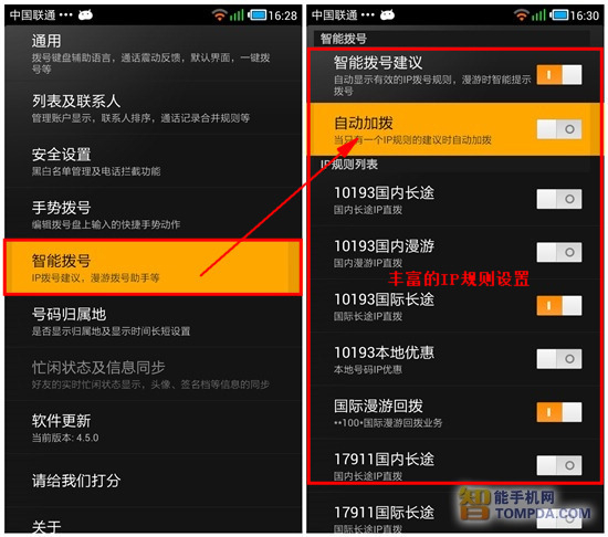 可自动加拨IP | 通过设定规则,实现拨打长途时自动加拨对应运营商的IP号 |