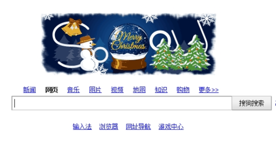 搜狗是一幅动态图片,水晶球、圣诞老人乘着麋鹿车飞过,雪人、圣诞树、雪花,一样样都告诉你圣诞节要到了。