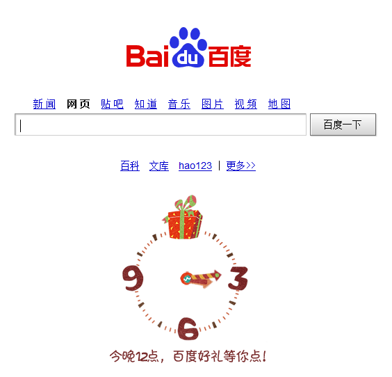 百度则有些故弄玄虚,午夜12带你,百度好礼等你点,大家只好耐心等待平安夜钟声敲响的那一刻才能知道百度究竟葫芦里卖的什么药。