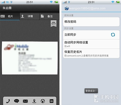 那么接下来问题来了,究竟这两款名片扫描工具的识别情况怎么样呢?来扫几张名片试试看吧。名片的拍照过程和相应的截图我就不方便放出了,毕竟名 片涉及到了不少个人隐私,图片上有过多的马赛克也会影响大家的视觉,不过从实际使用情况来看,两款名片工具的识别效率还是不错的,都能够基本正确的对用户 信息进行识别。