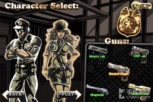 乍一看,以为这是一款动作类的警匪游戏,但其实这是一款考验玩家反应能力的游戏。游戏采用美式漫画风格,略有血腥感。游戏有男女警察可选,枪支 的选择倒是不少。画面中会不时从各个方向出来手持匕首的歹徒,你要快速地干掉他们,否则匪徒再出现约一秒的时间便会给你重重的一击,只需三刀,你的小命就 玩儿完了哦。