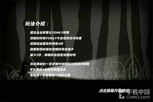 其实说白了,这就是一款另类的跑酷游戏。点击屏幕使主人公闭眼躲过种种障碍陷阱,闭眼起始时间为4秒,但随着路程的增加与难度的提升,闭眼的时间会逐渐简短,睁眼时闭眼时间会慢慢恢复。规则有些诡异有些难理解,不过上手之后就会熟悉了。