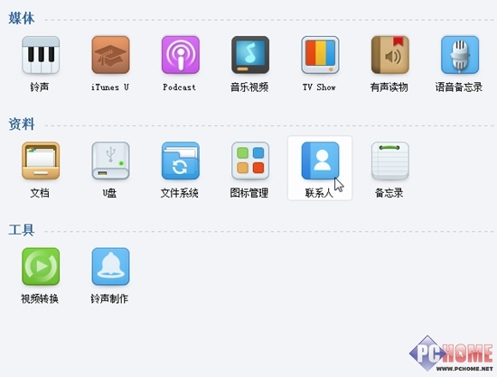 提供了较全面的多媒体管理,比如音视频转换,铃声制作等等。用户资料管理方面,也提供联系人、备忘录、U盘等等同步功能。