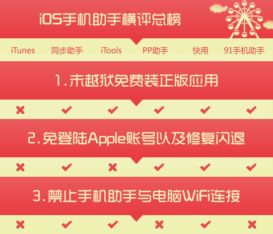 应用版本齐全性:iTunes 同步助手 iTools PP