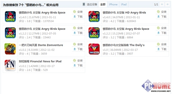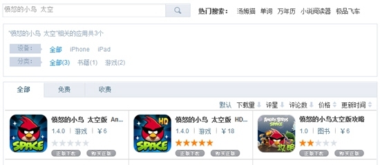 搜索结果准确,版本只有两个对题,其他的虽然包括了“愤怒的小鸟”,但是都不是太空版。