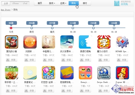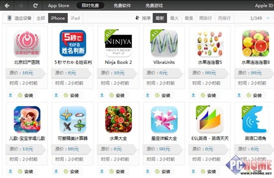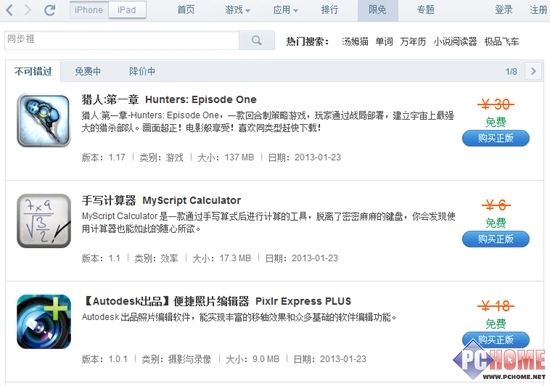 PP助手相比iTools,多了应用和游戏的原价说明,并且按照最新、最火、最贵、周排行、月排行,对限免进行非常详细的分类;唯一缺点就是没有下载次数说明。