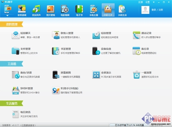 iOS管理工具推出已久,各类手机助手都能提供丰富全面的在线应用资源,普通的文件、通讯录同步,或者应用及多媒体资源管理,将不再是评测的重点,我们在文章之后,会着重于在当前较为受到网友关注的精细功能进行评测。