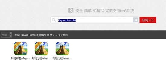 搜索出三个版本的“Mayan Puzzle”,比同步助手、PP助手少了一个,版本齐全性不如前两者。