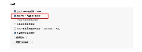 1.打开设备wifi-打开iTunes-勾选"wifi同步"-应用