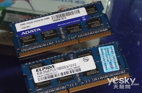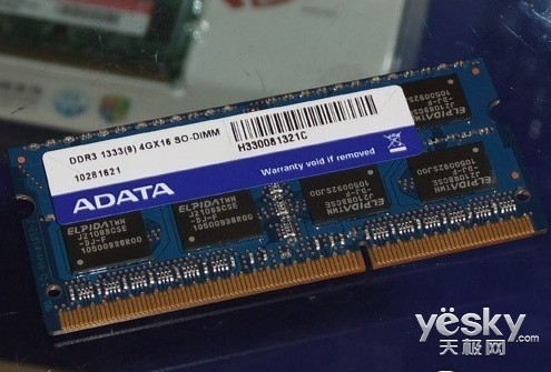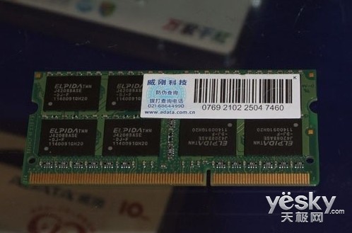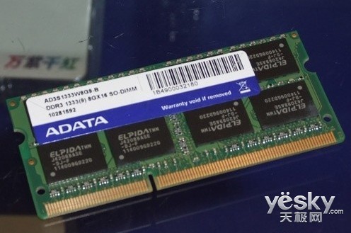 威刚单条8GB DDR3-1333笔记本内存批量上市中关村卖场,和入门级的威刚紫色PCB板V-DATA内存不同的是,这款内存属于高端A-DATA系列,采用绿色PCB板。