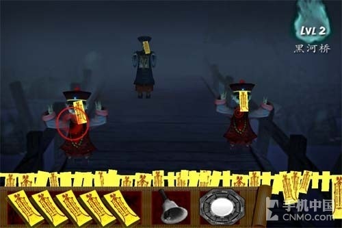 用重型机枪打僵尸的风格,玩家肯定都玩得差不多了,但以茅山道具来镇压僵尸想必很少有人接触过吧。本作正是这样的用茅山道术驱赶僵尸的游戏。操 作很简单,就是对着向你蹦过来的僵尸贴上灵符即可,当然了,前面几关的难度不大,但是到了之后的关卡,用到的道具还会有招魂铃以及照妖镜等等。游戏画面质 量还算不错,声效方面,我认为非常的棒,绝对的阴森恐怖。除了每关出现不同类型的僵尸以外,还有性感的幽魂女鬼哦。