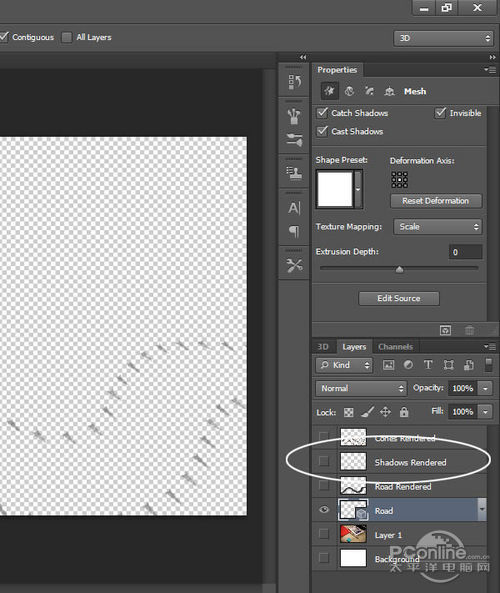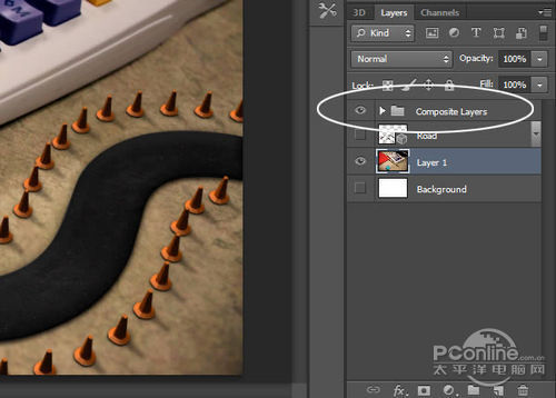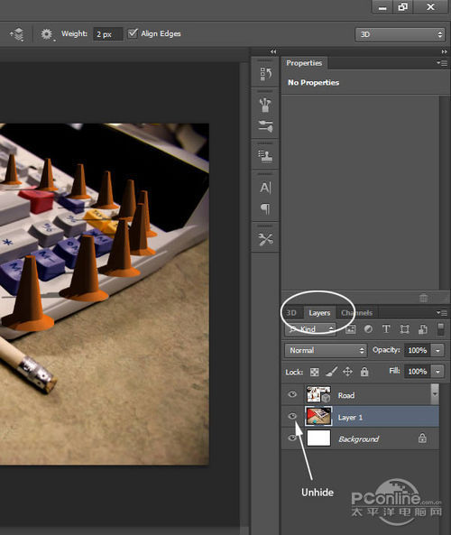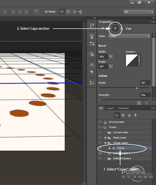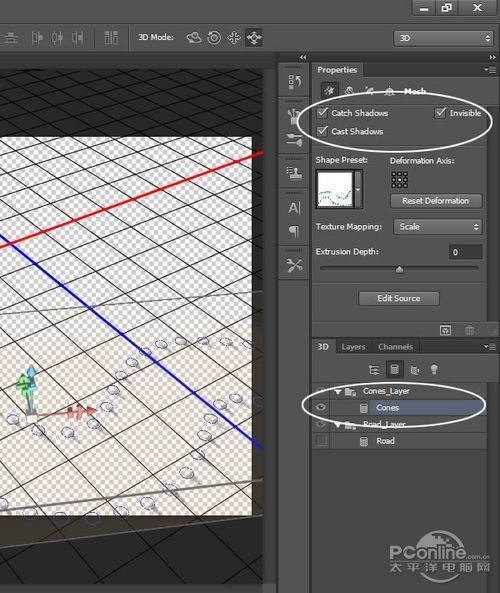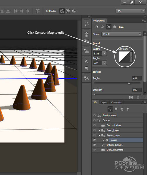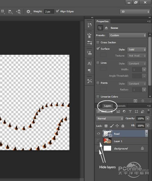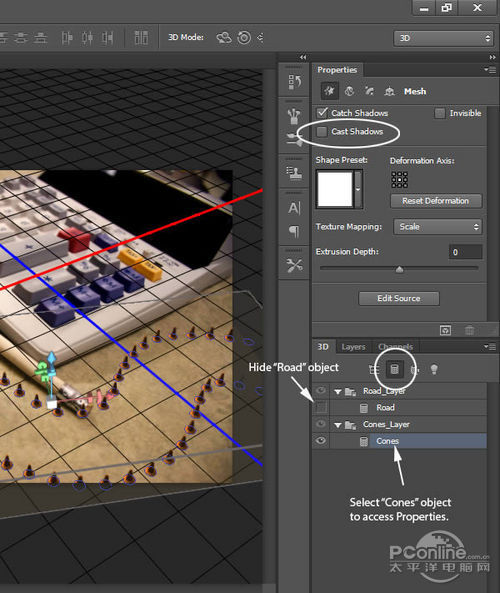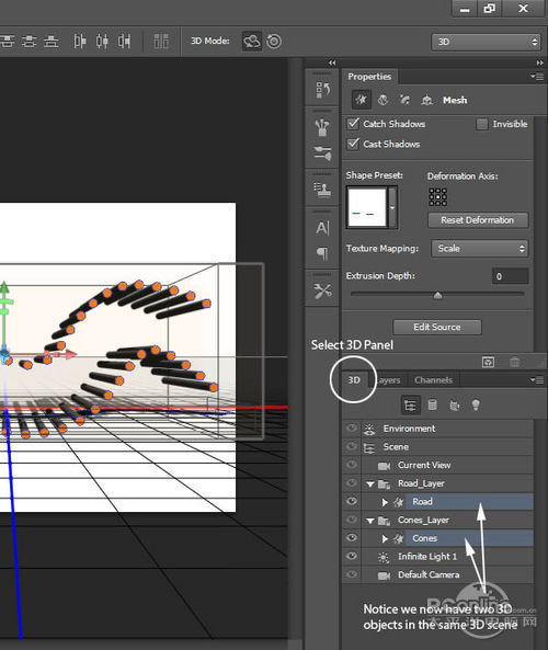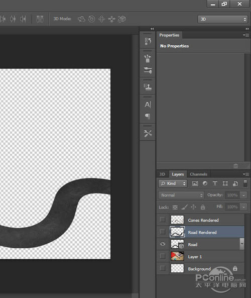 再回去3D面板,隐藏“Road”和“Cones”图层。