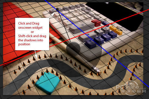 按着Shift,点击拖拉场景中的阴影,然后将它放置在与原场景合适的方向。效果如下图所示。
