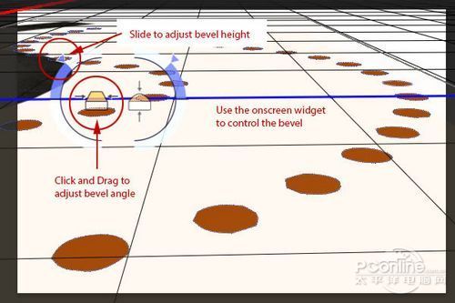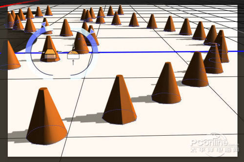 下面要将增加一个斜面在“Cones”图层,让它看起来比较像是真实构筑物。首先选择当前视角,然后使用顶端的导航工具,放置好视角,然后将其靠近Cones。设置如下图所示。