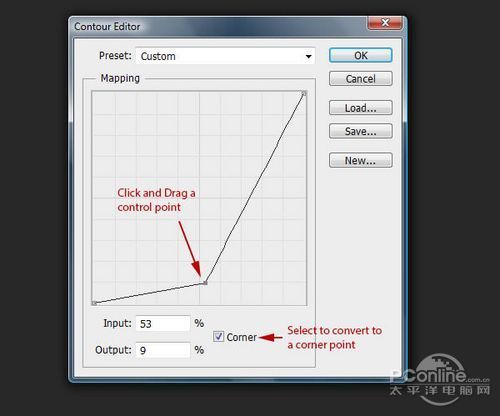 在进行景深设置之前,先用加深工具,如下图所示位置将角落变暗。