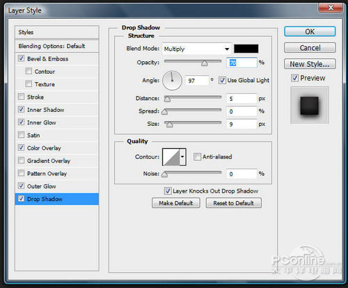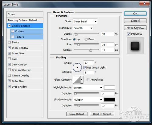选择“Road Rendered”图层,增加图层样式,然后如下面设置。